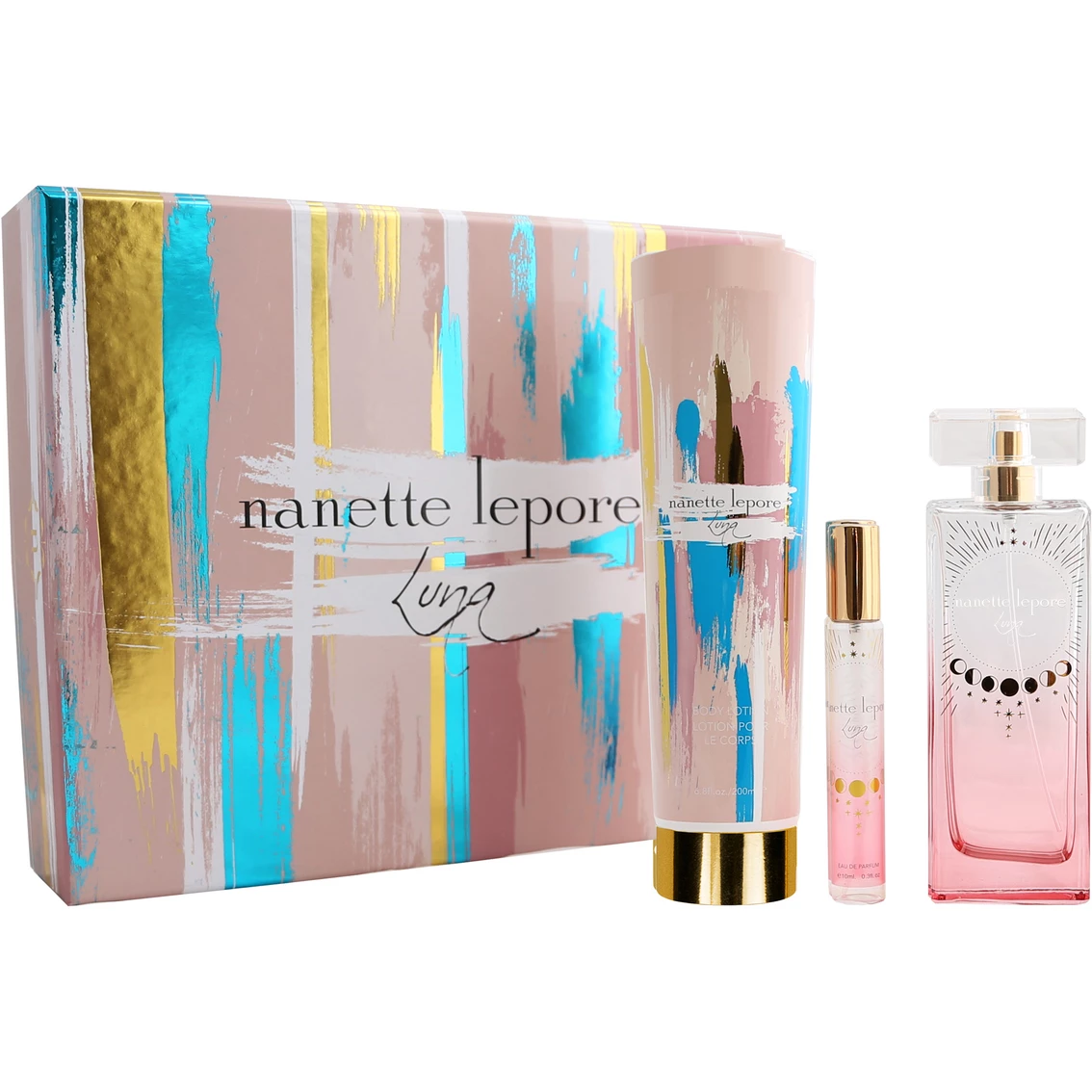 Lunaβs enchanting scent is both engaging and smooth. The dark notes will awaken your senses and keep you feeling fearless in every step you take. This Nanette Lepore Luna gift set contains a 3.4 oz. eau de parfum, 6.8 oz. body lotion and 10ml travel spray.